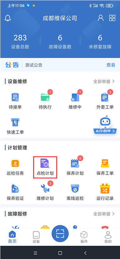 3、APP支持执行设备点检计划