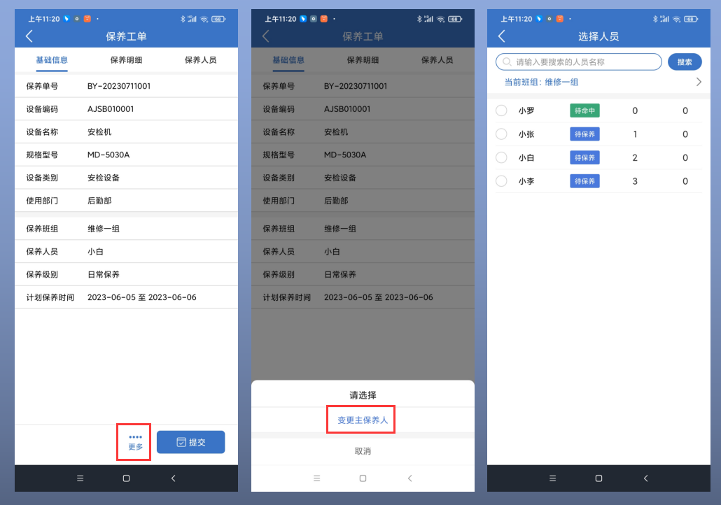5、APP保养工单支持变更主保养人