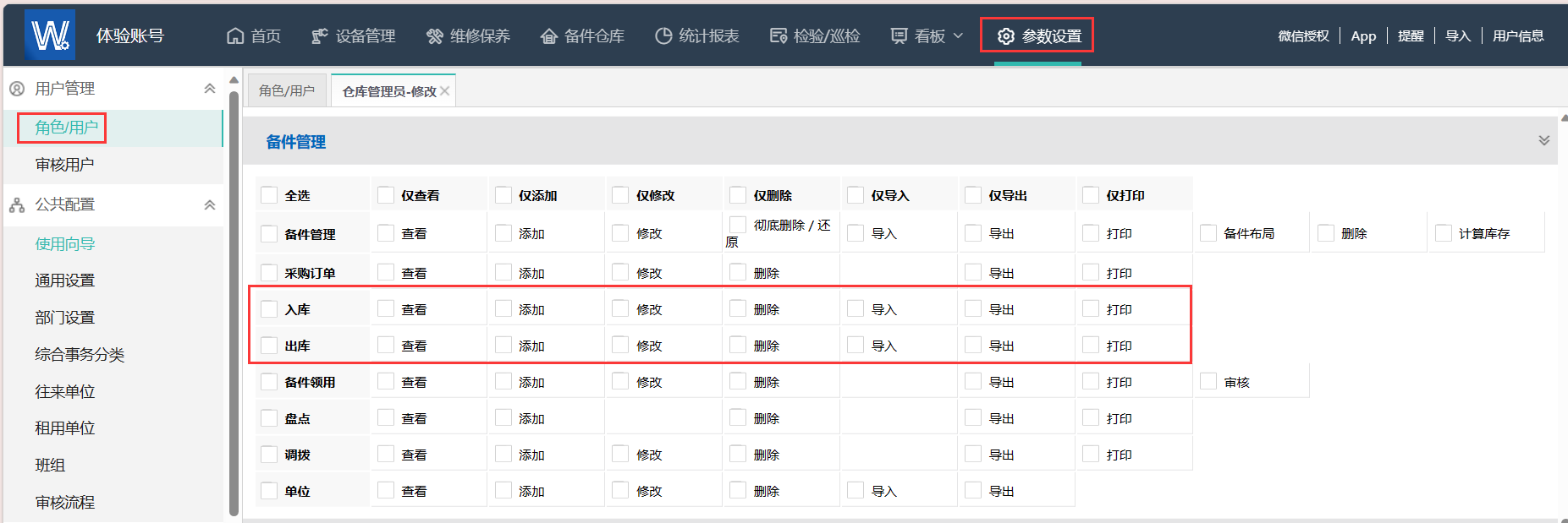 · PC端角色组权限将入库与出库的权限进行分设,方便用户根据企业情况灵活进行调整。