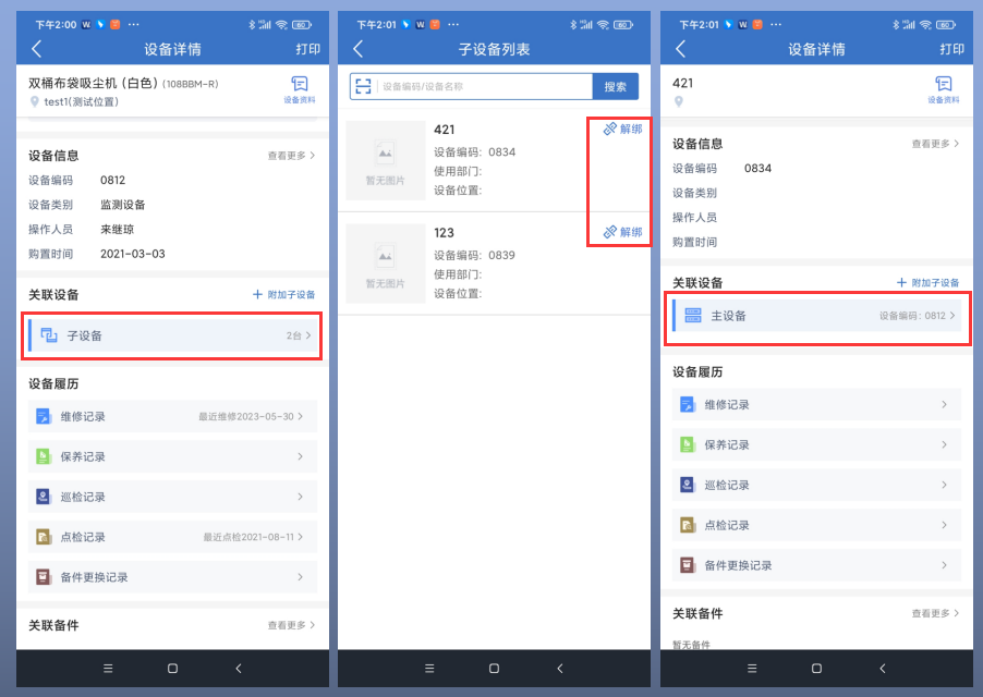 · APP端可查看设备主子关系详情,并可解绑子设备 。