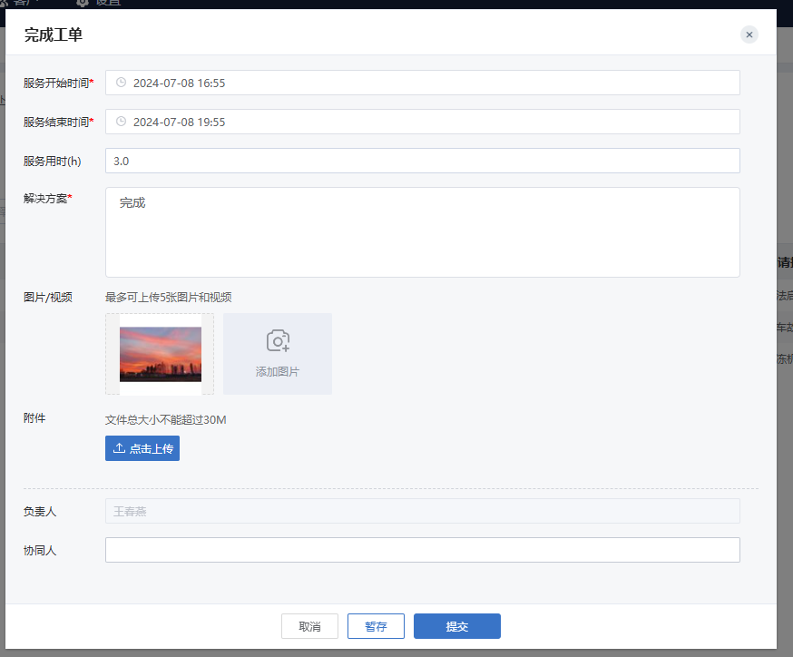 点击【单号】处,可以查看工单详情;点击【操作】处,可以根据对工单进行对应的操作。