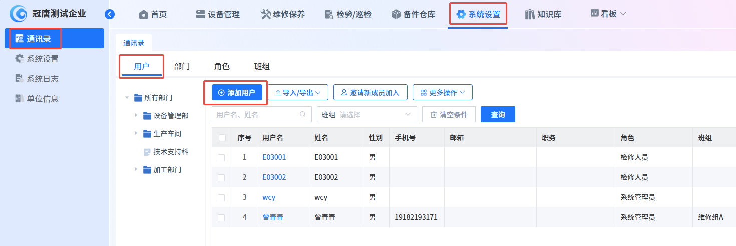 (1)电脑端操作流程:【系统设置】->【通讯录】->【用户】->【添加用户】;