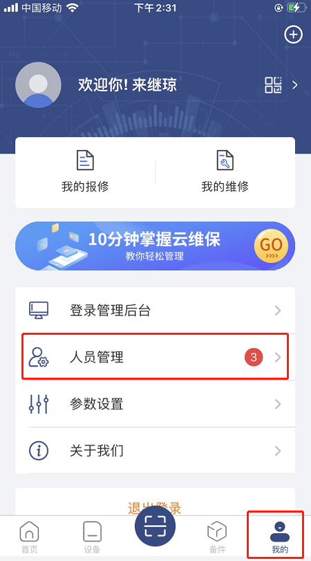 (3)APP操作流程:【我的】->【人员管理】->【添加人员】。